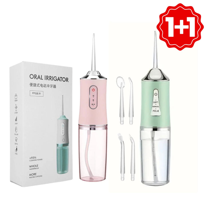 Descopera solutia ideala pentru o igiena orala impecabila oriunde te-ai afla, cu Setul 2 Irigatoare Bucale Profesionale de la Produs Redus. Acest pachet promotional 1+1 este conceput pentru a-ti transforma rutina zilnica de ingrijire dentara, oferind eficienta si confort, atat acasa cat si in calatorii.