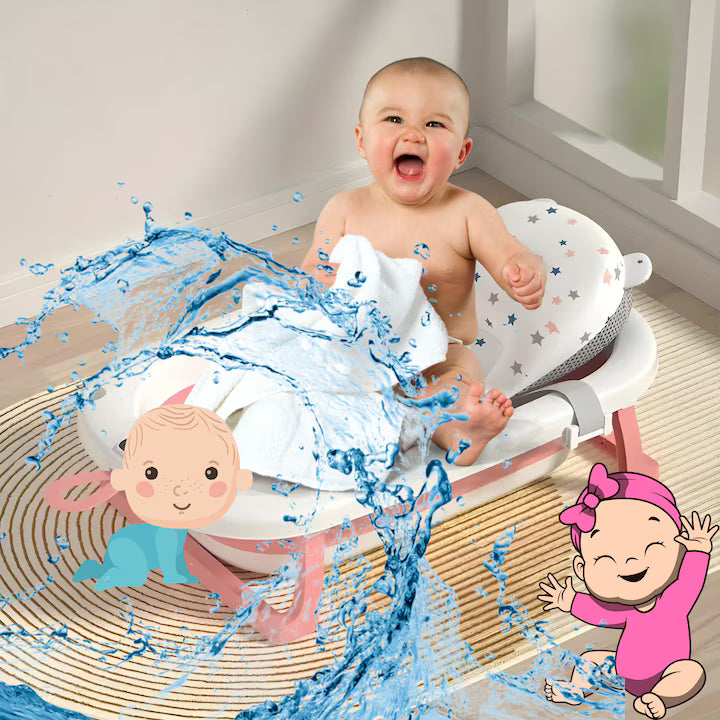 - Suport integrat + pernuță moale: Oferă stabilitate și confort, susținând capul și spatele copilului în timpul băii.