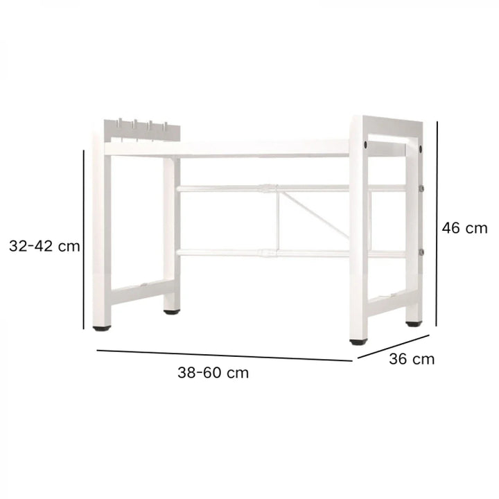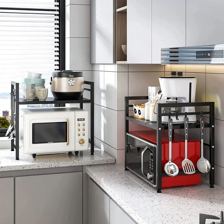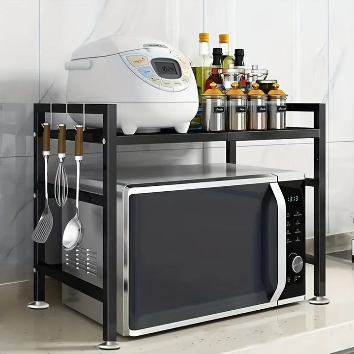 Raft metalic cuptor cu microunde, negru, etajera ajustabila, organizator bucatarie, 40-60 x 36.5 x 45 cm