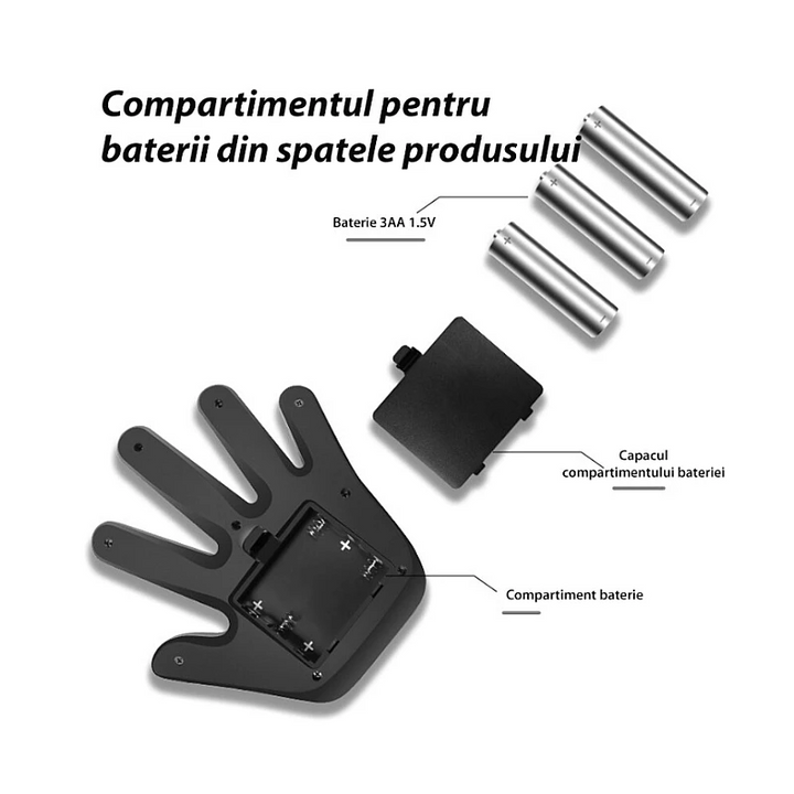 Gesture Lights Alimentata de 3 baterii AA (neincluse), telecomanda necesita o baterie mica A23 (neinclusa), aceasta lumina contine 203 margele LED care isi schimba culorile si modelele in functie de miscarea degetelor.