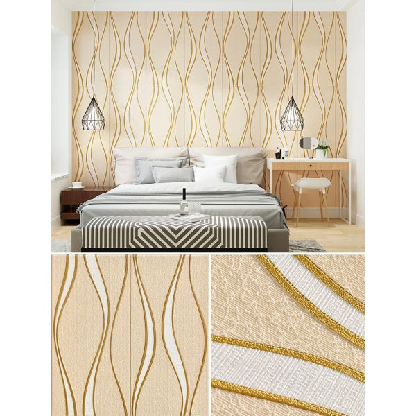 Set 5 x Tapet 3D Autoadeziv cu model bej cu fir auriu si alb
