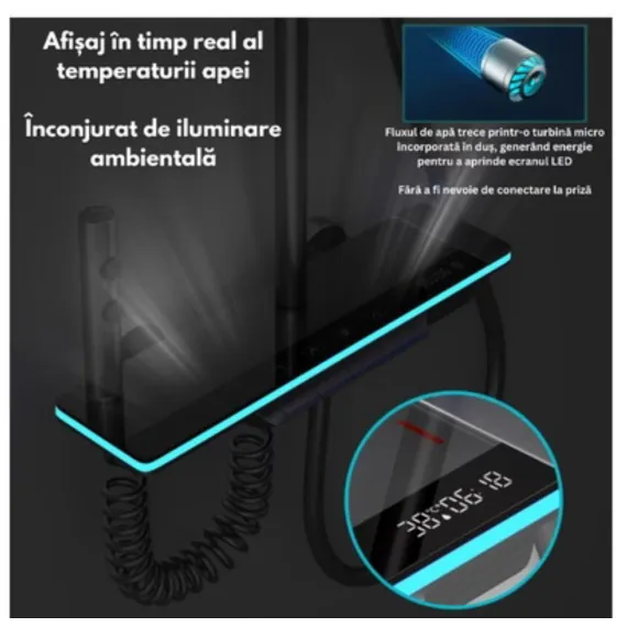 Prin tehnologia inovatoare de generare a energiei din apa, afisajul digital va permite sa vizualizati in timp real temperatura apei, oferindu-va atat confort cat si un sentiment tehnologic avansat. Iluminarea ambientala face baia mai vibranta si mai atractiva, transformand-o intr-un loc preferat chiar si pentru cei mici.