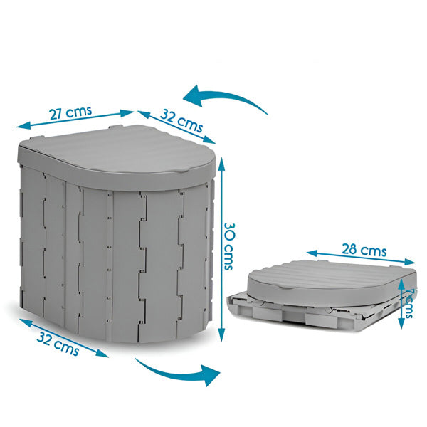 Datorită designului său pliabil și a pungii care o însoțește, această toaletă este ușor de transportat oriunde și poate încăpea chiar și într-un vehicul mic.