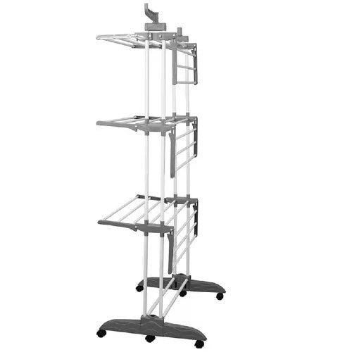 Designul său vertical maximizează spațiul disponibil, fiind perfect pentru apartamente mai mici sau pentru a fi utilizat în zonele unde nu aveți suficient loc pentru un uscător tradițional. Cele patru niveluri permit uscarea simultană a mai multor articole de îmbrăcăminte, optimizând astfel timpul necesar uscării.